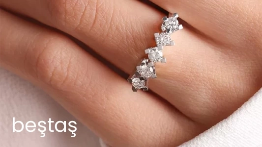 Genellikle bağlılığı pekiştiren ve ilişkinin 5. yılına göz kırpan Beştaş Pırlanta Yüzük modelleri aşk, mutluluk, huzur, sadakat ve bolluk kavramlarını ifade eder. Genellikle yıllanmış evlilikler için ideal bir yıl dönümü armağanıdır.