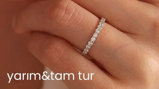 Yarımtur pırlanta evlilik yüzüğü, şık ve zarif bir tasarıma sahip olan ve pırlantaların yüzük üzerinde yarım daire şeklinde dizildiği popüler bir yüzük modelidir. Yarımtur Yüzükler, tamtur pırlanta yüzüklere göre daha sade ve klas bir görünüm sunar. Eğer eş adayınız klas ve zarif bir tarza sahipse, Yarımtur Pırlanta Yüzük onun için mükemmel bir seçim olacaktır.